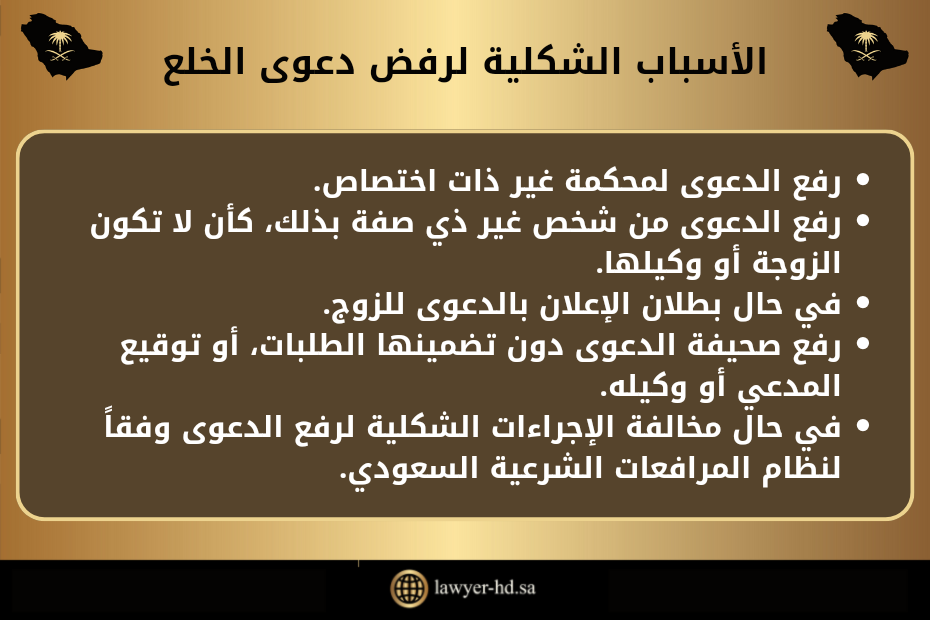 - في حال مخالفة الإجراءات الشكلية لرفع الدعوى وفقاً لنظام المرافعات الشرعية السعودي.